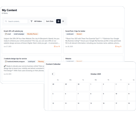 Plan campaigns, create content, and grow your visibility — all from one simple dashboard.